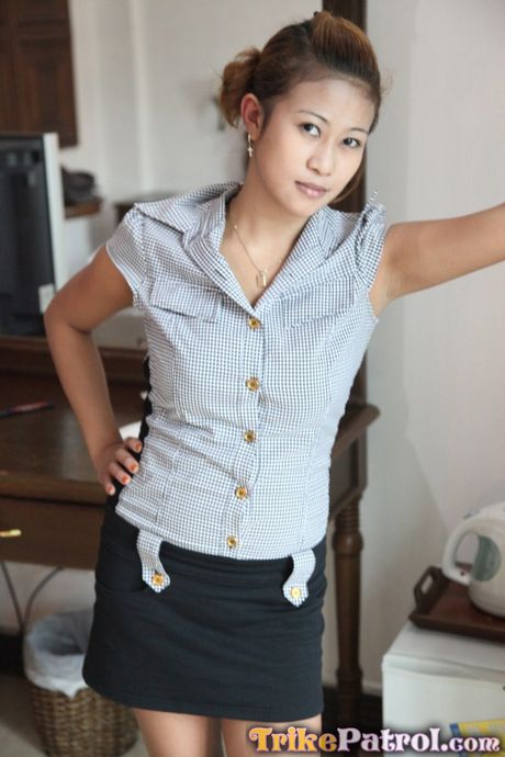 Trike Patrol: Asian teen Shane strips and shows her big racks and ass in a solo
