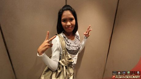 Schoolgirls Asia: Carla in fishnet tights spreads her legs to flash her brown love orifices