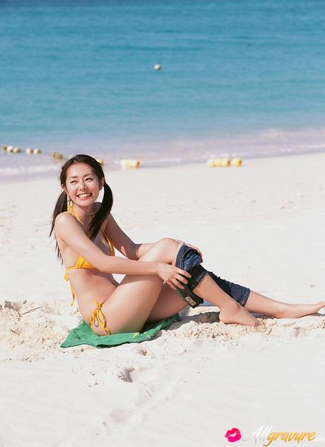 All Gravure: Energetic asian beauty playing on the beach in her bikini