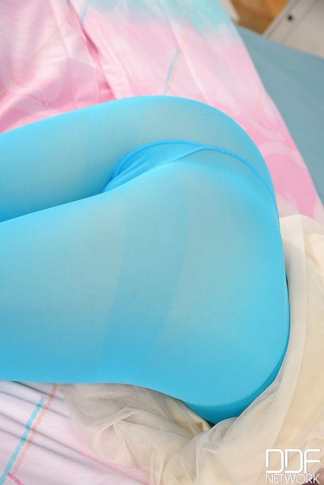 Hot Legs and Feet: Sexy russian dark-haired hottie You Mi in sexy pantyhose exposes tiny tits and plays with sex toy