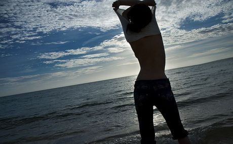 Idols 69: Super hot Asian babe Misako strips and shows her hot ass and tits on the beach